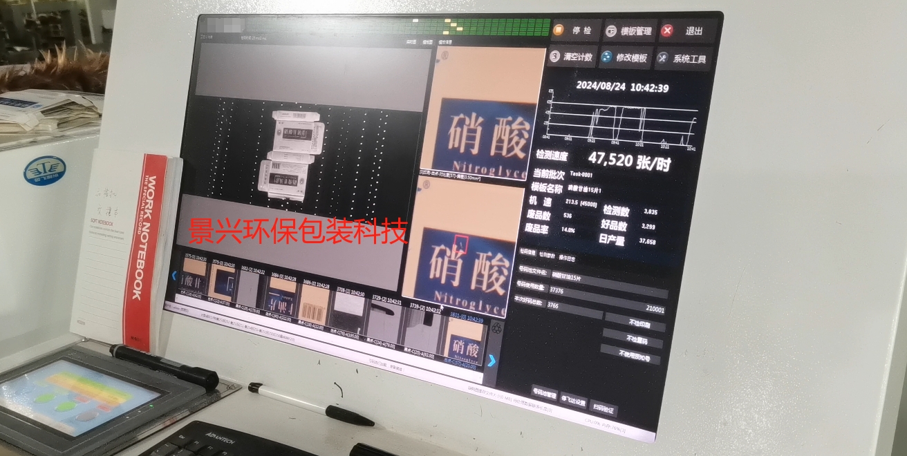 如上圖所示的品檢機作業(yè)界面,作業(yè)員實時可以看到檢測異常,根據(jù)作業(yè)人員的說法,一個小時可以檢測約5萬個包裝盒,速度是杠杠的。