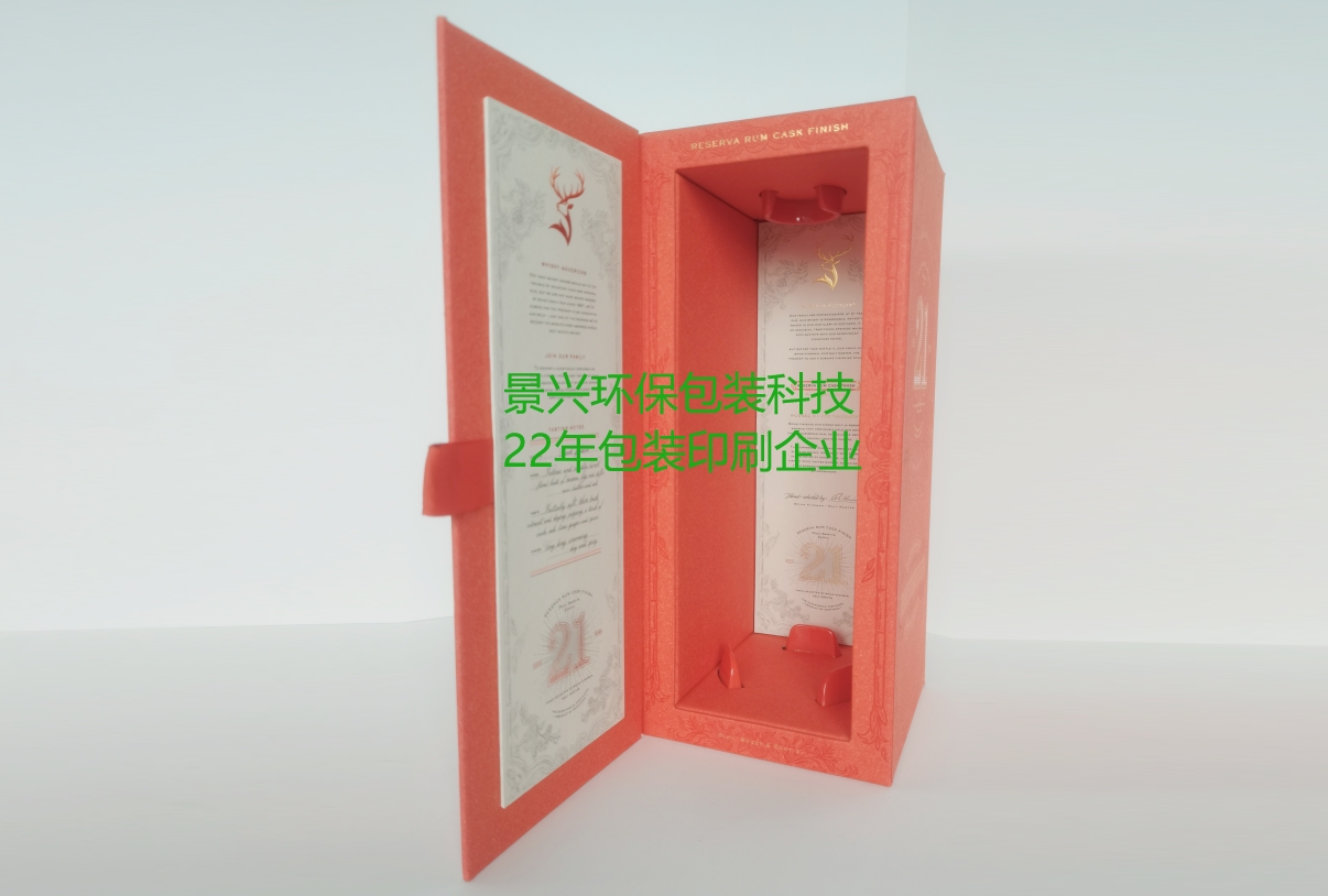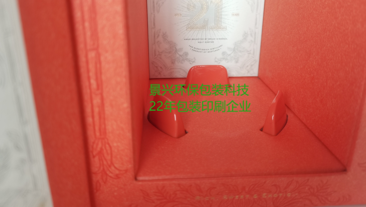 在講到酒盒包裝印刷時,我來說說我們這款酒盒的設計與構思。下圖是我從景興包裝的展柜拿出來PO的,之所以特別介紹這款包裝盒,確實是因為其有特色,與傳統(tǒng)的酒盒包裝相比瞬間高檔了許多。